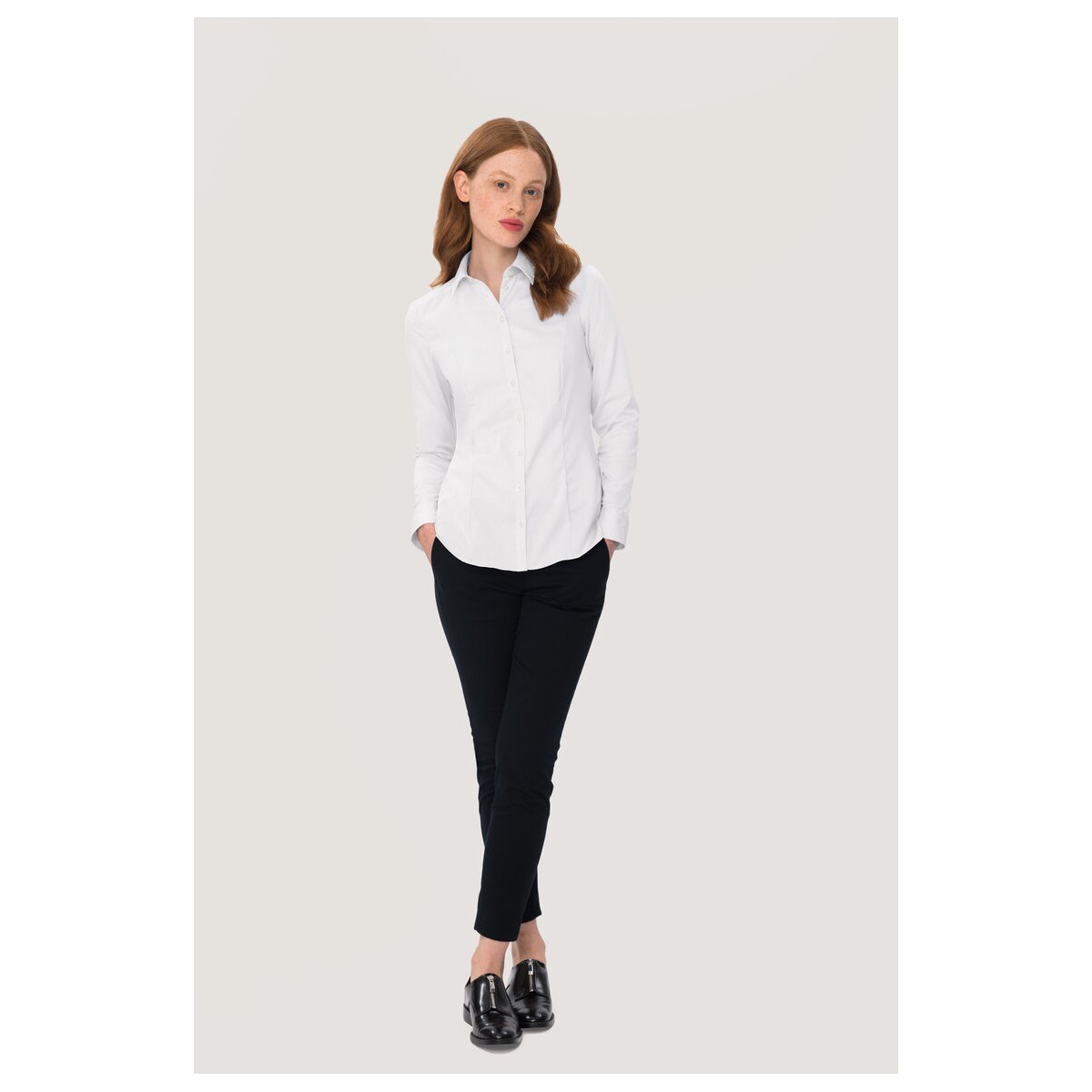 Die HAKRO Bluse Business No. 0106 ist eine klassische Businessbluse, die zeitlose Eleganz mit hohem Tragekomfort und professioneller Verarbeitung verbindet. Sie eignet sich ideal für Büro, Empfang, Messen und alle Bereiche, in denen ein gepflegtes, souveränes Erscheinungsbild gefragt ist.