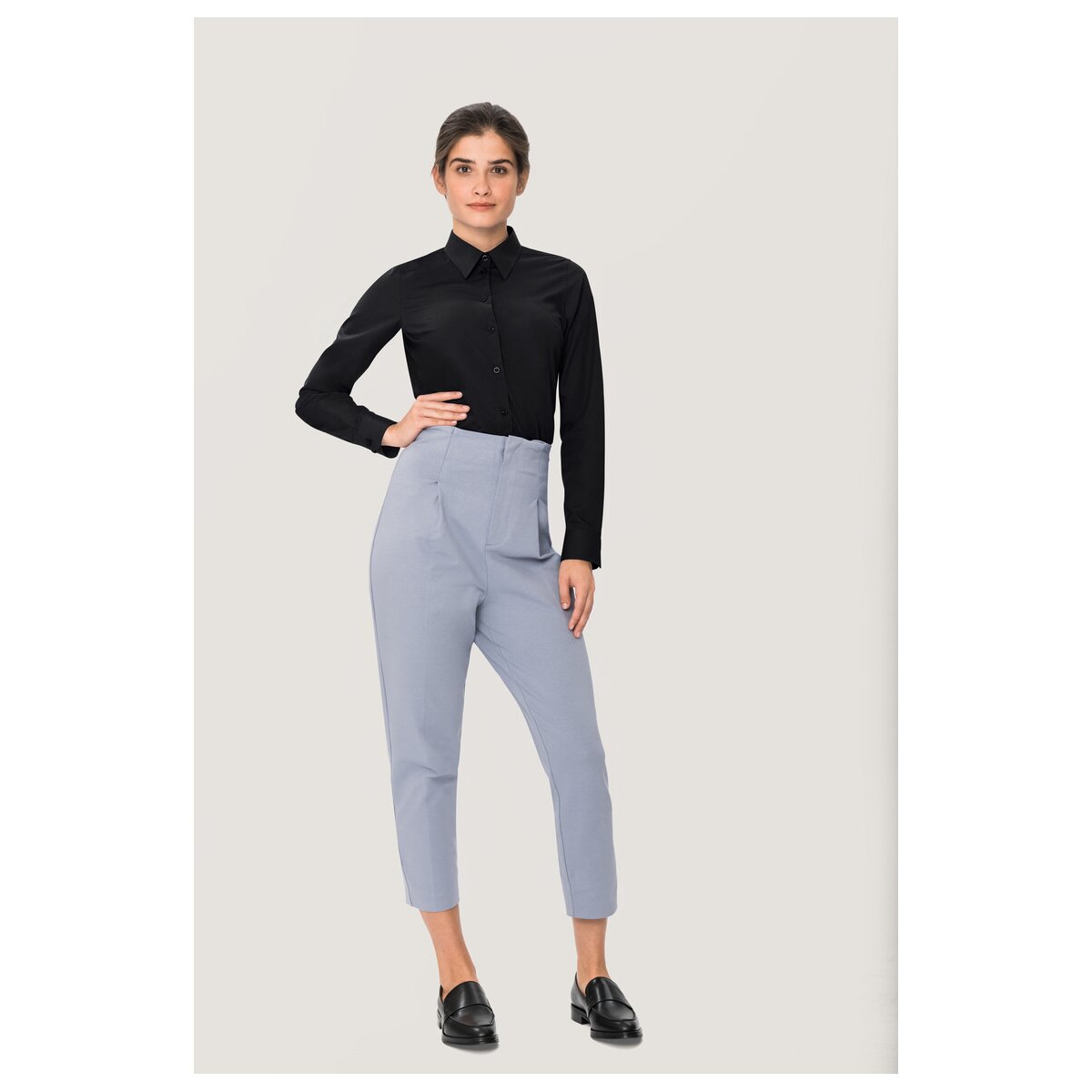 Die HAKRO Bluse MIKRALINAR® No. 0121 ist eine besonders strapazierfähige Bluse, die für Berufsalltag, Büro, Service und andere aktive Arbeitsumgebungen konzipiert wurde. Der klassische Kent-Kragen sorgt für ein professionelles Erscheinungsbild, während die weitenverstellbaren Manschetten und der leicht gerundete Saum für Komfort und eine perfekte Passform sorgen.