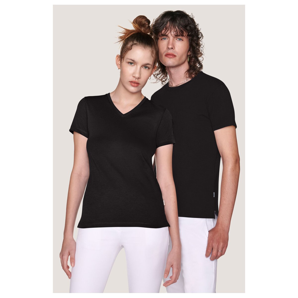 Die HAKRO COTTON TEC® Damen V-Shirt No. 0169 ist ein funktionelles T-Shirt mit V-Ausschnitt, schmalem Halsbündchen und Nackenband, das für aktiven Berufsalltag, Sport oder Freizeit konzipiert wurde. Die verstärkte Kragennaht und die Innenseiten der Seitenschlitze mit Gewebeband in Anthrazit sorgen für zusätzliche Stabilität und Langlebigkeit.